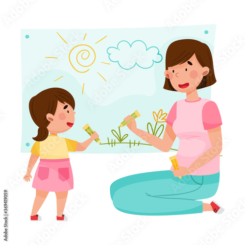 Makeup salon with artist stylist and client vector illustration. Mirror, furniture and cosmetic spray. Woman making make up to girl, giving consultation. Beauty and fashion concept