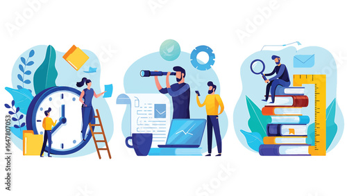 Film production vector. Cinema illustration. Cartoon people in the studio making movie video. Filmmaking online course or cinematography festival award ceremony concept