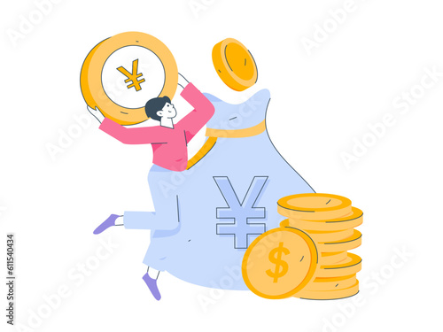 Business people holding light bulb, watering money bush and picking dollars from it, vector illustration. Business growth, making money, investment in new idea, innovation project concept.