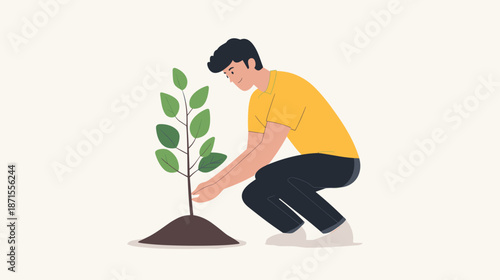 Male asian farmer growing rice vector icon isolated background.