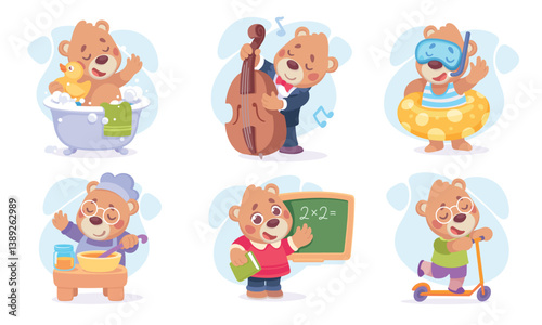 Male face skincare routine step-by-step vector poster. Illustration of male character portrait applying different cosmetic products for beauty procedure, shaving, anti-aging self care for good looking