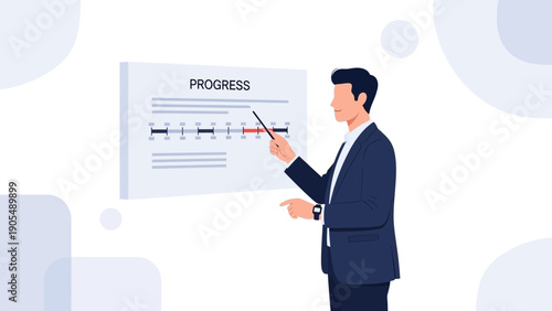 Male teacher with a pointer in his hand vector icon isolated on white background.