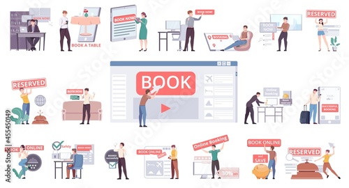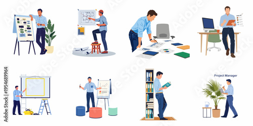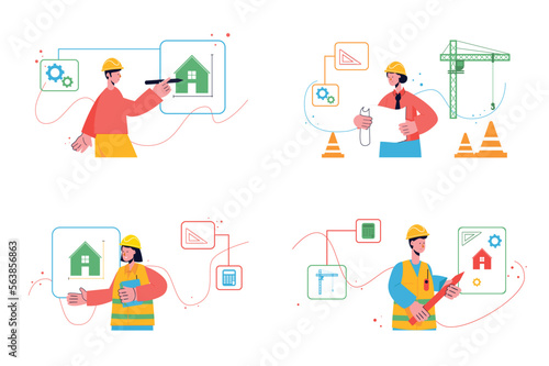 Man and woman characters clean home and do household work. Vector illustration set of people cleaning house, dusting, washing clothes. Housework, laundry, washing machine.