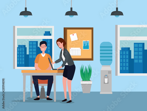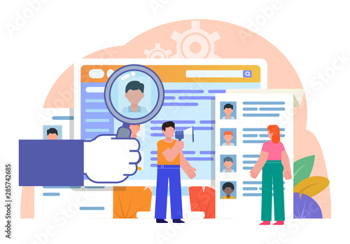 Man buying new cell phone. Seller showing smartphone to customer, flat vector illustration. Phone store interior.
