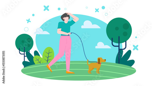 Man carry his girlfriend on his back. Romantic happy couple concept vector illustration.