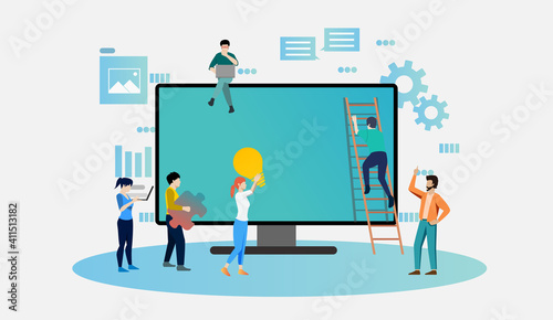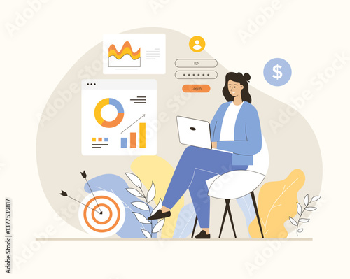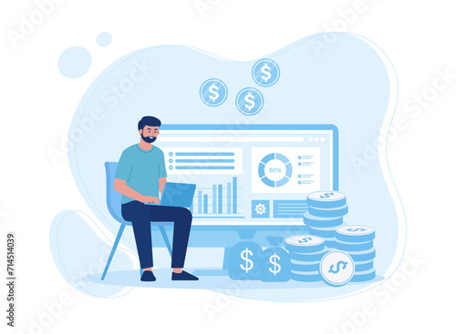 Man choosing video channel on laptop computer to start watching, flat vector isometric illustration. Podcasting, multimedia content concept.