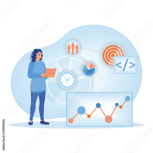 Man choosing video channel on laptop computer to start watching, flat vector isometric illustration. Podcasting, multimedia content concept.