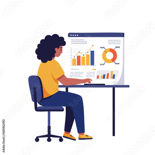 Graphic illustrator working at computer vector. Busy man creative worker illustration. Freelancer at home workspace using software for game asset creation. Graphic design and development