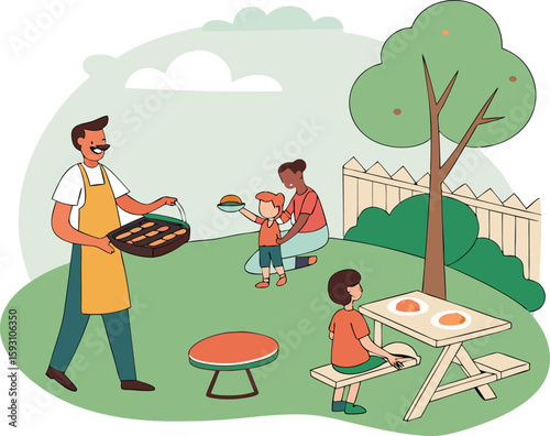 Man holding scales with fruits and fast food, flat vector illustration. Equilibrium. Balance healthy eating and junk food. Weight loss, proper nutrition. Balanced diet vs junk food.