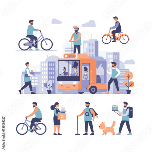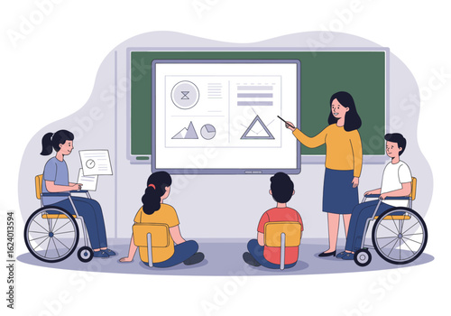 Man in wheelchair barrier free environment for transportation in bus vector icon isolated on white background