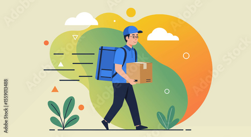 Man jump with parachute from the plane. Urban parkour and sky diving. Extreme sport vector concept illustration. Web site design template.