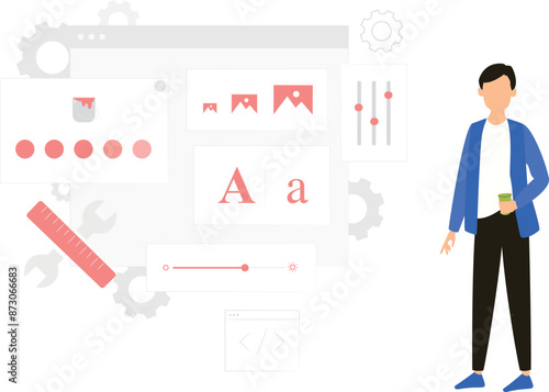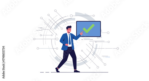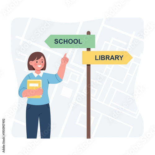 Man making life choice standing in front of yes and no direction road signs, flat vector illustration. Life changing decision.