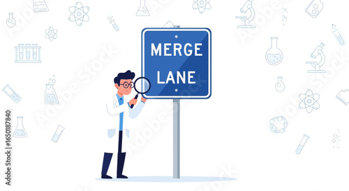 Man making life choice standing in front of yes and no direction road signs, flat vector illustration. Life changing decision.