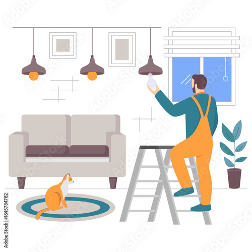Young man holding model of airplane. Vector illustration in flat style. Scale model building, model aircraft hobby concept design element.