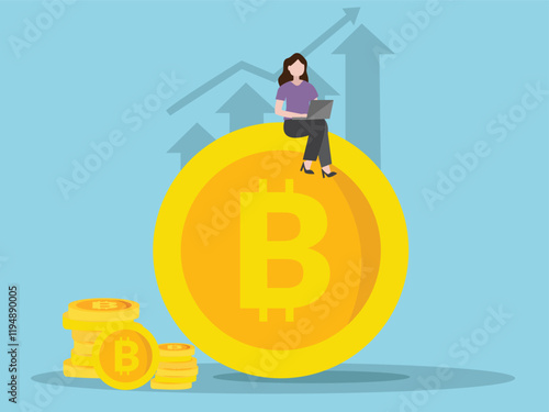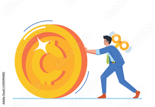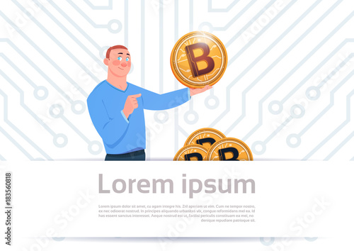 Business man miner with bitcoin vector icon isolated on white background. Cryptocurrency wallet, mining and investment concept