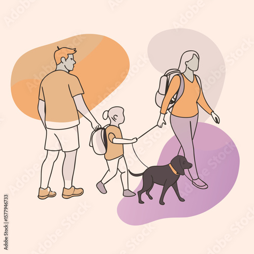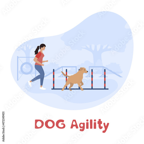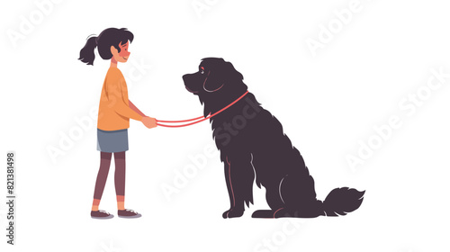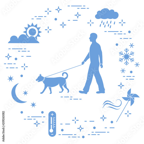 Man cleaning after dog vector. Male character picking up dog poop using gloves illustration. Pet owner walking puppy on lash isolated on white background