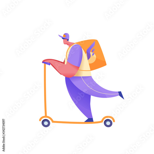 Man riding electric scooter vector icon. People using eco-friendly transport isolated on white background