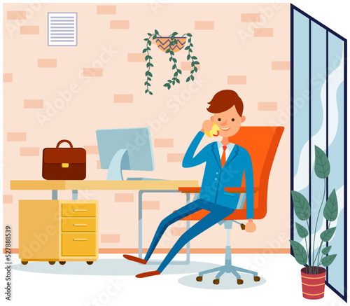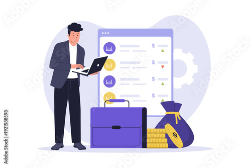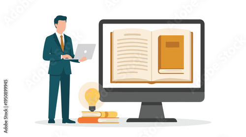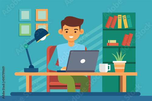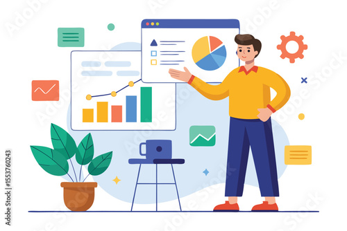 Young man singing karaoke. Vector illustration in flat style. Music, performing arts hobby concept design element.