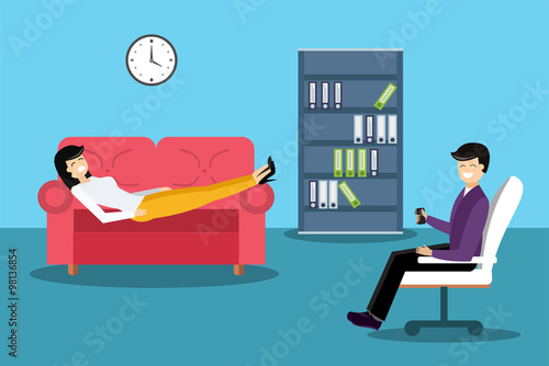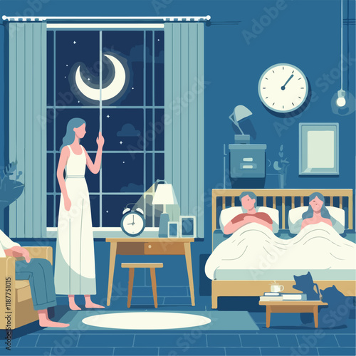 Sleeplessness vector illustration. Insomnia disorder. Man sitting on bed suffering from nightmare or depression