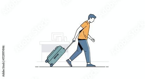 Man travelling with luggage using mobile phone icon vector. Searching place of destination, booking hotel or taxi isolated on white background