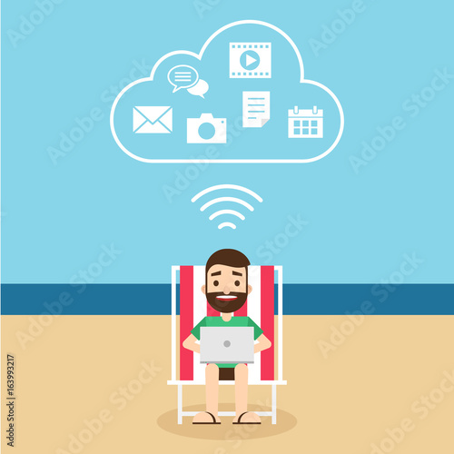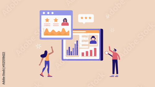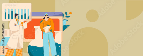 Man using mobile phone apps. Woman check documents before going to trip. Travel preparations concept illustration. Vector web site design template.