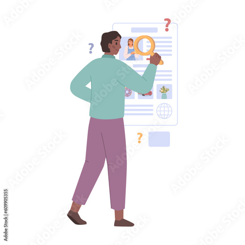 Man using online shopping and home delivery of groceries service during quarantine vector icon isolated on white background. Viral pandemic concept.