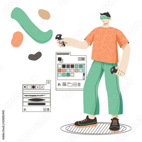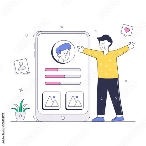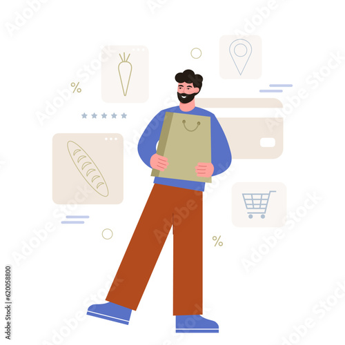 Man using self-service cinema kiosk to buy tickets vector illustration isolated on white background