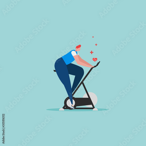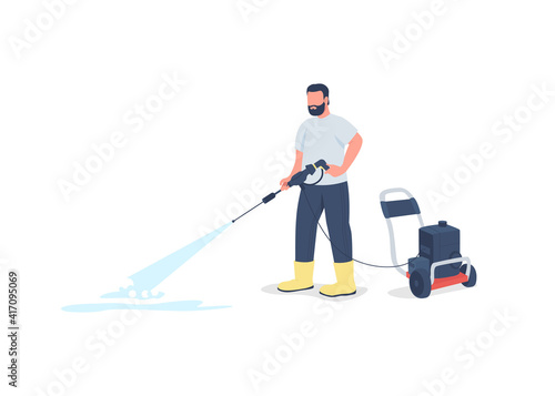 Man vacuuming floor in his room. Cleaning service concept vector illustration. Guy cleaning home living room.