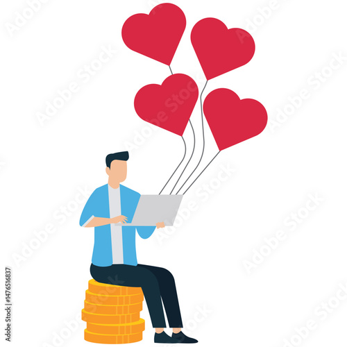Man volunteer donating clothes vector. Charity and donation icon. Male character holding shirt and heart isolated on white background