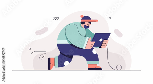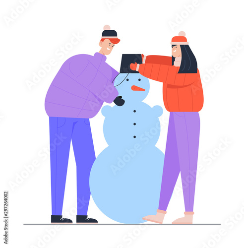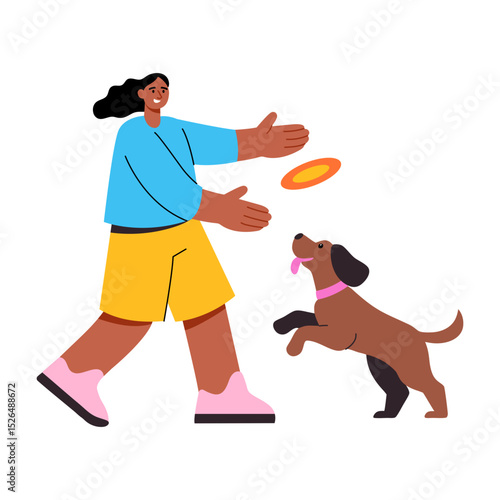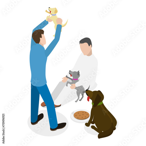 Man walking dog vector. Male character picking up poop using special bag. Cleanup after pet defecation in park or city street. Take care of animal and ecology environment concept