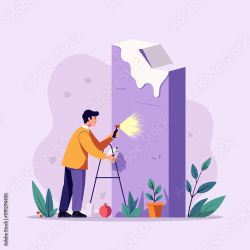 Man washing floor with mop, flat vector illustration. Housework, house cleaning, housekeeping, household chores.