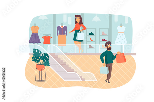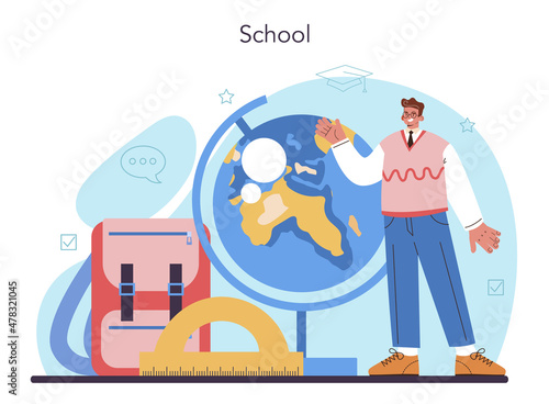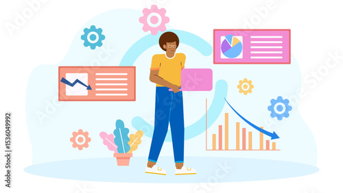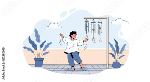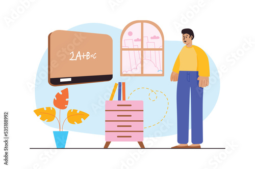 Man washing window in living room, flat vector illustration. Housework, household chores, housekeeping, house cleaning.