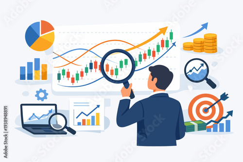 Man watching targeted tv ads sitting on sofa, flat vector isometric illustration. Addressable TV advertising technologies, addressable media, target marketing.