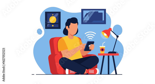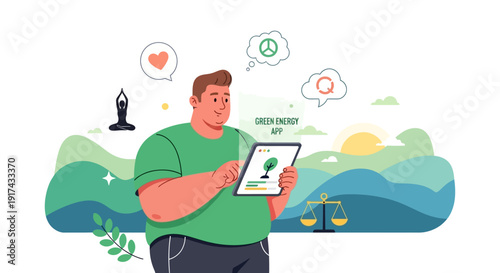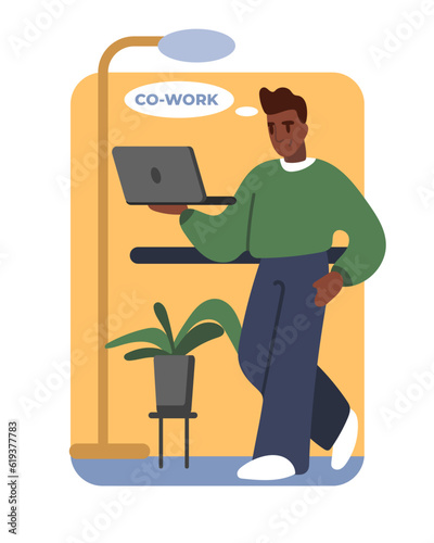 Man wearing glass helmet with respiratory system. Air pollution and covid virus protection. Vector illustration. Breathe fresh air concept.