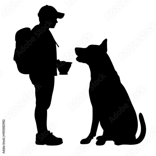 Man with dog vector. Pet lover icon. Puppy owner isolated on white background