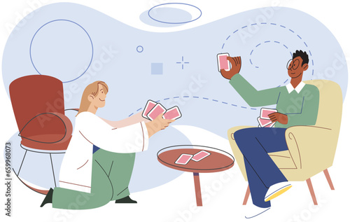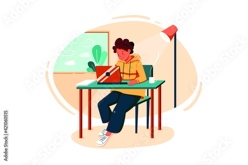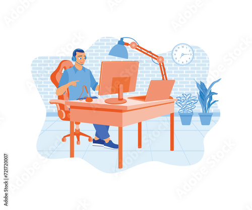 Man with mobile phone at coffee shop vector icon. Male character surfing internet sitting at table isolated on white background