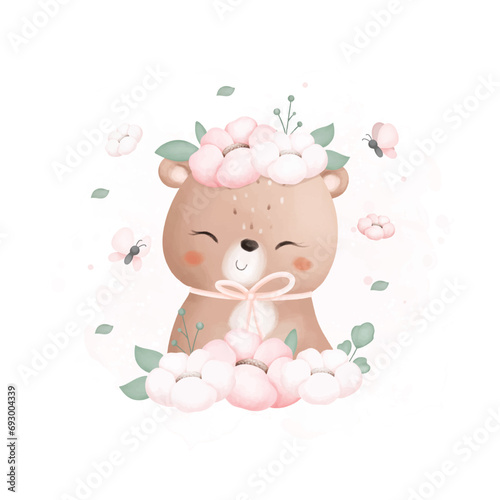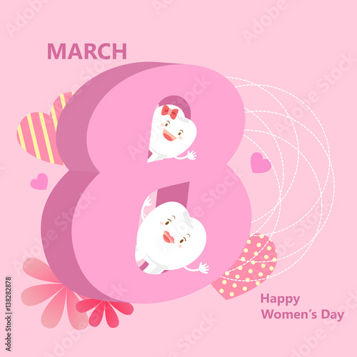Pink round display podium mockup, paper cut number eight, spring flowers, leaves, vector illustration. March 8, International Women Day background, pedestal stage for beauty and cosmetic product ads.