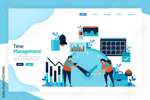 Marketing team work on business strategy. People work in office, teamwork communication. Vector web site design template. Landing page website concept illustration.