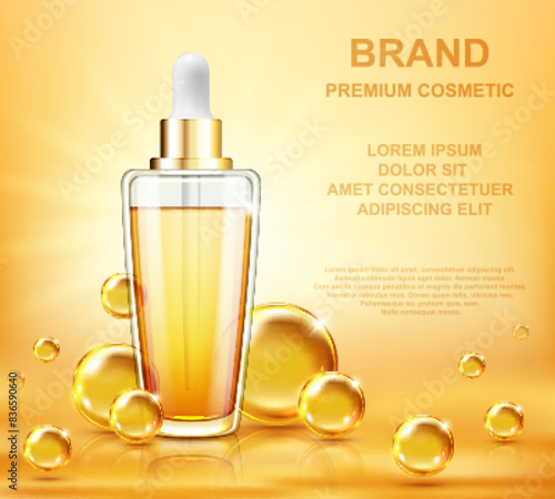 Massage almond oil flask realistic vector 3d icon. Organic cosmetic product for body skin care