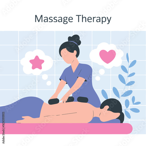 Massage therapy landing page design, website banner template set, flat vector illustration. Young woman getting face massage. Spa procedure, facial skin care and beauty treatment. Wellness center.