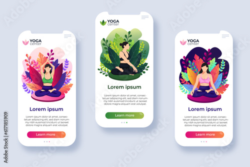 Massage oils, body treatments. Spa therapy. Relaxation procedure. Mobile app onboarding screens. Vector banner template for website and mobile development. Web site and UI design illustration.