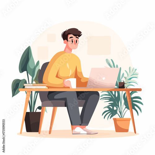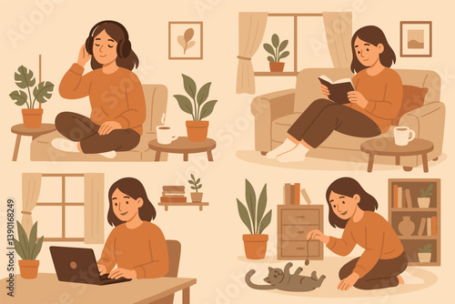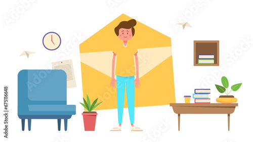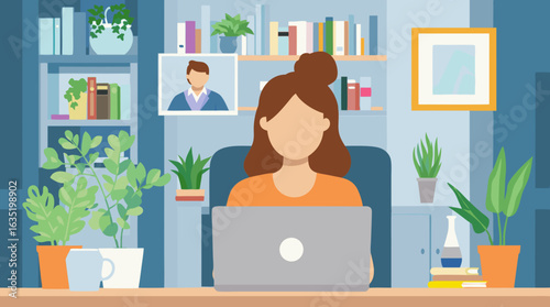 Young woman dreaming of her newborn baby while sitting at office desk with closed eyes, vector flat style design illustration. Maternity, motherhood, pregnancy planning concept.