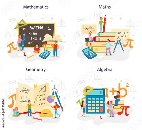 Math equation solving mobile phone app. Mathematics formula, calculator, equation solution. App screens. Menu vVector banner template for website mobile development. Web site design illustration.