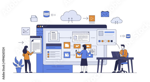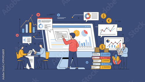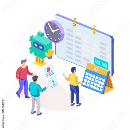 Math class, vector flat style design illustration. Tiny characters doing sums using big calculator, mathematical formulas. Mathematics science, education concept for web banner, website page etc.