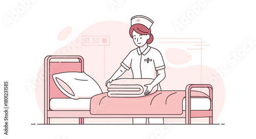 Meat store, flat vector illustration. Salesman standing at display fridge counter with fresh pork, beef, sausage. Farm food market. Butchers shop. Supermarket, grocery store meat section, department.