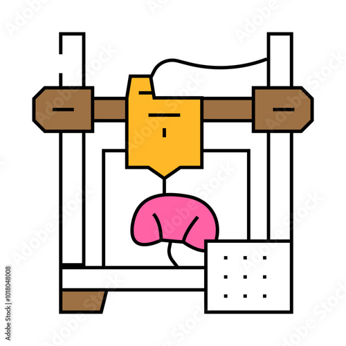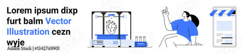 Medical 3d printing vector. Transplant organ prototyping on 3d-printer in hospital laboratory. Healthcare and medicine illustration. Liver bio-printing technology