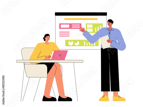 Medical prescription, vector flat style design illustration. Doctor female giving prescription to her patient after medical examination. Medicine and healthcare concept for web banner, website page.