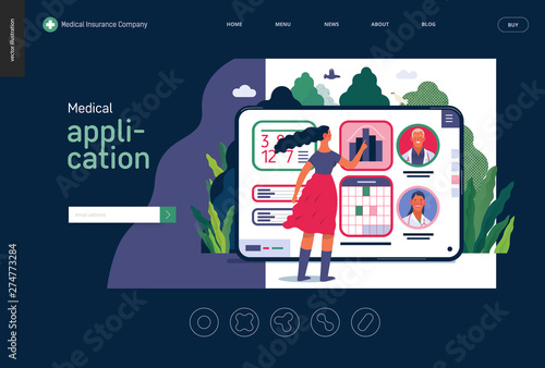 Medicine landing page template. Vector flat style design concept for medical website and mobile site development. First aid kit, syringe, plasters, thermometer, pills, spray bottle. Home health care.
