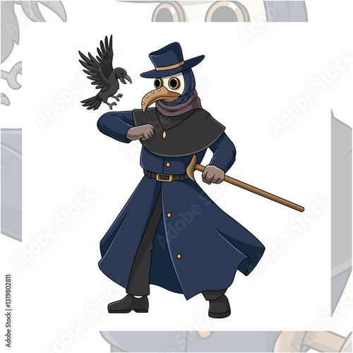 Medieval sorcerer in mask with poison vector icon isolated on white background.