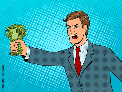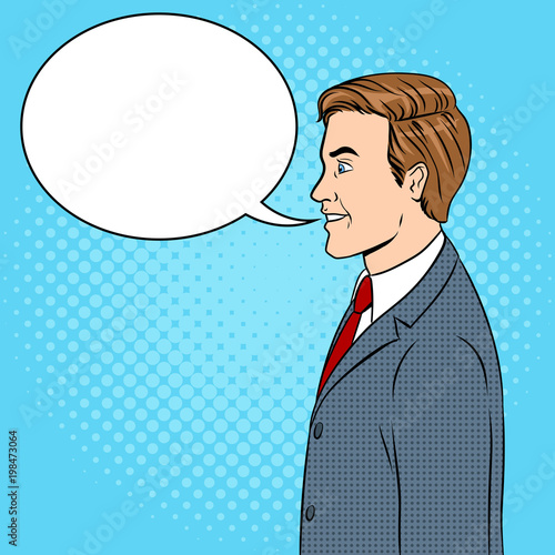 Meditating man with speech bubble in retro pop art comic style. Mental balance and yoga concept.